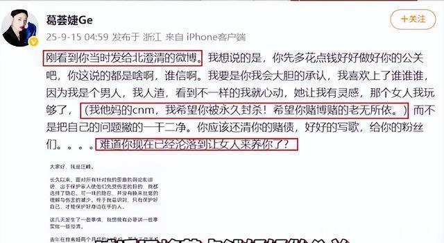 二、葛荟婕怒斥汪峰牵扯往事 9月15日,葛荟婕看到汪峰秀恩爱,脾气又上来了,她发文怒斥汪峰。 表示如果自己是汪峰的话,就会大胆承认自己是渣男,喜欢上了谁谁谁,而不是用拙劣的公关,将自己撇的干干净净。